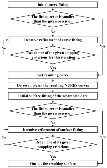 - Xie, W.C.; Zou, X.F.; Yang, J.D.; Yang, J.D.; Yang, J.B. Iteration and optimization scheme for the reconstruction of 3D surfaces based on non-uniform rational B-splines. Comput. Aided Des. 2012, 44, 1127–1140. [Google Scholar] [CrossRef]