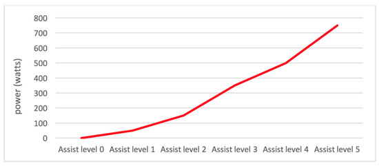 Once the values are obtained, the level of assist is calculated. Each assist level r is associated with a power , whereby the possible power values are as given in Equation (9).