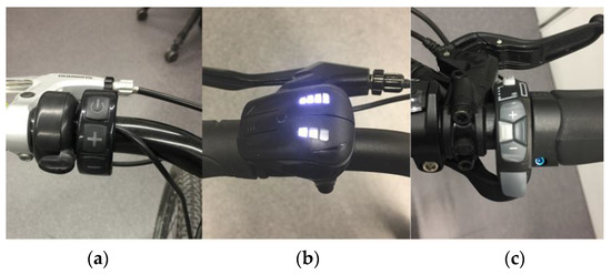 Example of three assist level commercial controllers: (a) Bafang controller; (b) ebikemotion controller; and (c) BionX controller.