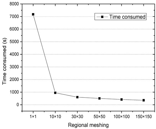 The experiment investigated the time consumed for historical user access information under different regional meshing levels, that is, the influence of the regional meshing on the execution efficiency of the algorithm. The results are shown in Figure 4.