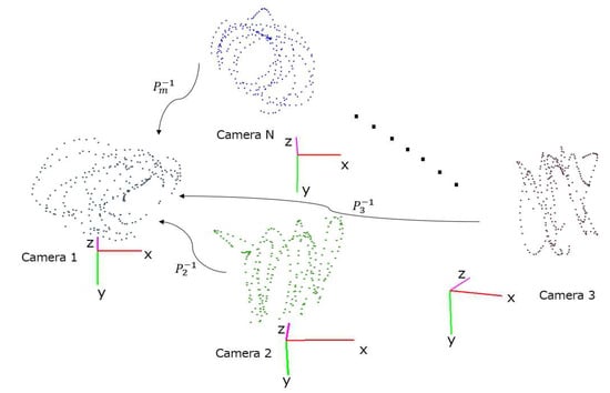 Pairwise calibration: Camera 2 to Camera N are aligned to the reference coordinate (Camera 1).