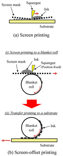Schematic images of (a) screen printing and (b) screen-offset printing.