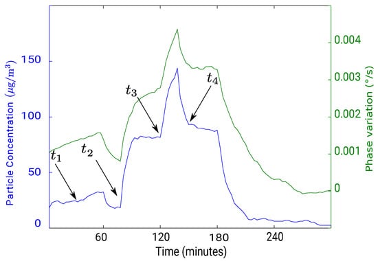 since the flow rate Q is constant over the whole sampling time and c can be considered constant as well during a very small period . Eventually, the particle concentration will be proportional to the phase variation in respect of time:
