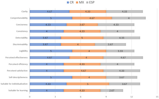 Conciseness, consistency and self-descriptiveness deal with the amount of information required to deliver the message and the way in which this data is displayed every time. The characteristics of presented information (i.e., detectability, legibility, discriminability, clarity and comprehensibility) are related to freedom from distraction and interpretability.