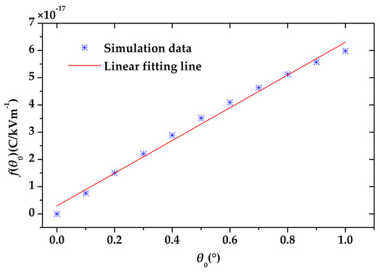 where θ0 is the amplitude of the torsional angle, f(θ0) is the amplitude of the induced charge variation under the electric field of 1 kV/m. We also simulated f(θ0) under different torsional angles θ0. According to the simulation result shown in Figure 11, it proves that f(θ0) is nearly linear to the torsional angle θ0, as given by