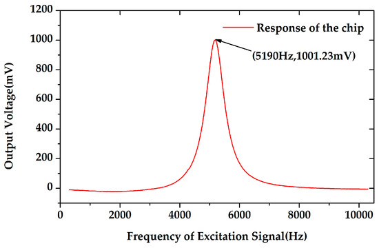 The amplitude-frequency response of the microsensor. The resonant frequency of the microsensor was 5190 Hz.