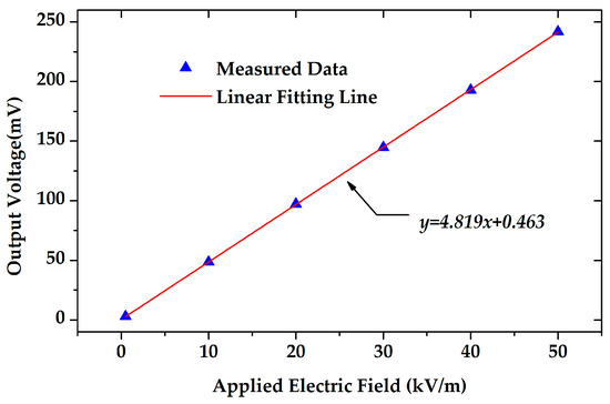 The response of the microsensor versus the applied electric field. The linearity was 0.15%.