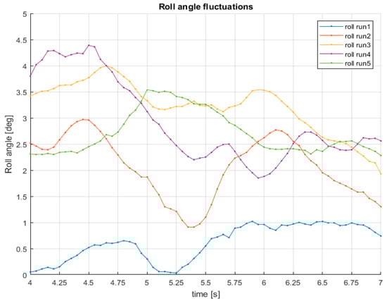 The reason that causes the technological gap in tilting vehicles is that current automotive remote sensing sensors fail when they lean over []. This limitation owing to sensors’ design specifications explains the lack of equivalent ADAS for motorcycles. Previous studies of road safety reported range limitation in the use of these sensors on tilting vehicles [,]. The reason can be found in the roll angle fluctuations characterizing the dynamics of this type of vehicles, even when vehicles travelling straight.