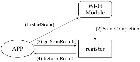Figure 1 shows a framework for the scanning of Wi-Fi signals by Android smartphones. For brevity, the figure illustrates only how the system processes the Wi-Fi signal and does not show how it processes the intermediary signal. The procedure for the system’s scanning of the Wi-Fi signal is described as follows:
