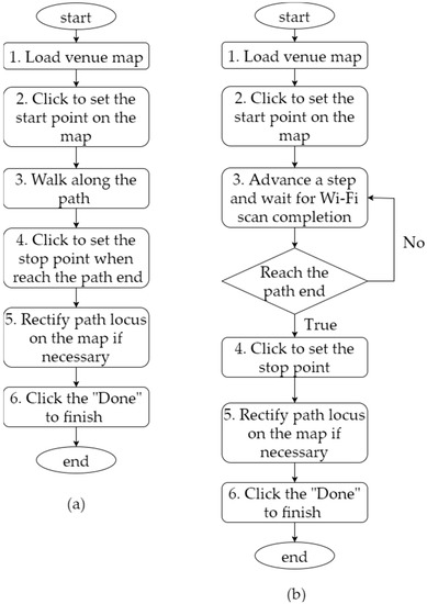 Wi-Fi signal procedures: (a) moving sampling (MS) and (b) stepped MS (SMS).