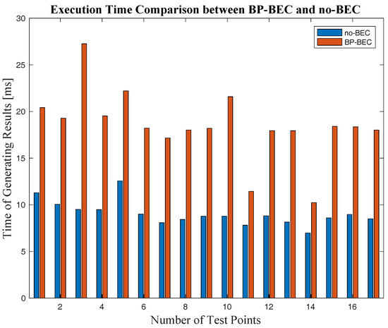 The execution time comparison between the BP-BEC and no-BEC algorithms.