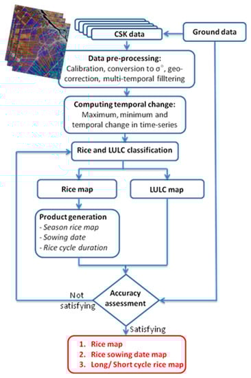 Figure 10 shows the flowchart for rice monitoring using CSK data.