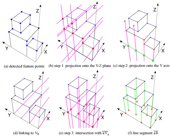 Figure 4f, the green lines represent the target heights between the feature points and their corresponding base points which will be determined in the following procedure.