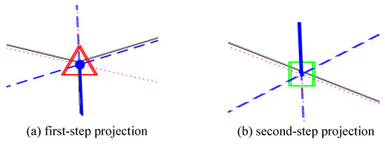 The divergences in the first and second projection steps provide useful information for vanishing point refinement. The more precisely the vanishing point positions are estimated, the fewer the divergences that may occur during the projection process.