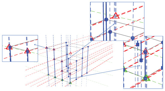 Figure 2d. The intersection of the lines are marked as points representing their groups in rectangles and triangles, respectively.
