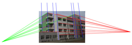 6]. These lines commonly appear in man-made structures, for instance, rectangular windows, floor lines, columns, and beams, and are useful for detecting vanishing points. However, how to calculate precise and accurate vanishing points is a great challenge because any deviation will cause error propagation to camera calibration and subsequent object reconstruction processes [