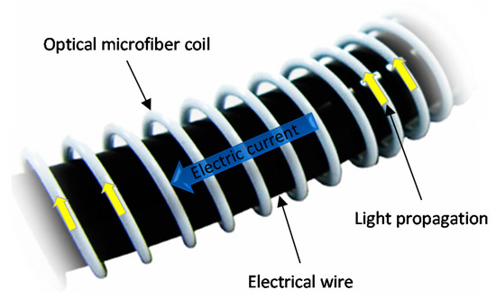 - Chen, G.Y.; Brambilla, G.; Newson, T.P. Inspection of electrical wires for insulation faults and current surges using sliding temperature sensor based on optical microfibre coil resonator. Electron. Lett. 2013, 49, 46–47. [Google Scholar] [CrossRef]