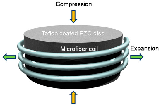 Schematic diagram of the microfiber coil resonator attached to the Teflon-coated piezo-electric ceramic disc.