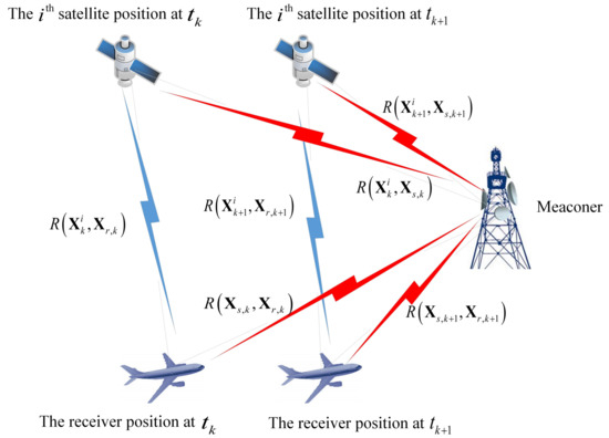 where is the line-of-sight unit vector of the satellite. The subscripts k and represent the time point and , respectively. is the position vector at , and it is the quantity we need to calculate by the algorithm proposed in this paper.