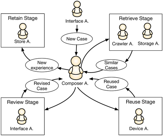 The Composer Agent is the main core of our MAS, implemented with a CBR architecture because this structure is perfectly suited to the requirements of the system. The communication of this agent with the rest of the MAS is shown in Figure 2.