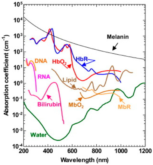 - Yao, D.-K. Optimal ultraviolet wavelength for in vivo photoacoustic imaging of cell nuclei. J. Biomed. Opt. 2012, 17, 056004. [Google Scholar] [CrossRef] [PubMed]