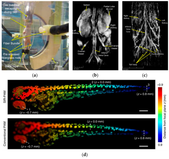 - Yao, J.; Wang, L.; Yang, J.-M.; Maslov, K.I.; Wong, T.T.W.; Li, L.; Huang, C.-H.; Zou, J.; Wang, L.V. High-speed label-free functional photoacoustic microscopy of mouse brain in action. Nat. Methods 2015, 12, 407–410. [Google Scholar] [CrossRef] [PubMed]