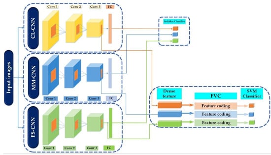 Accuracy is calculated from each FC layer of the three CNN models using the SoftMax classifier, as well as from the dense features obtained from the last convolutional layers of each model, using the SVM classifier after being encoded by FVC. Figure 2 resumes the first three aforementioned steps of the proposed method.