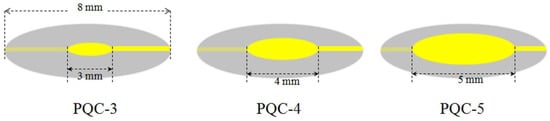 Illustration of the fabricated piezoelectric quartz crystal (PQCs) with three kinds of electrode diameters.