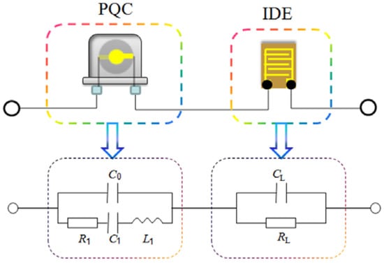 Equivalent circuit model of Interdigital Electrode-Piezoelectric Quartz Crystal (IDE-PQC) sensor.