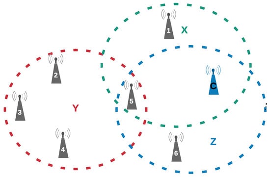 Figure 1 presents a WSN composed of seven nodes, one being the coordinator node. In this WSN, there are three regions identified as X, Y and Z. All nodes in the same region are considered to be neighbors and can hear each other. Nodes 2, 3 and 4 that are in the Y region are not able to directly communicate with the coordinator. In this network, it is possible to visualize the need for using relays, so that messages from all nodes of the network can reach the coordinator node. In addition, it is also possible to observe that to select adequate relays it would be necessary to consider other parameters besides the channel quality. For instance, nodes 1 and 6 have a good communication link with the coordinator, but, they are far from the nodes that need to use cooperation techniques to reach the coordinator. In this scenario, it would be more appropriate to select node 5 as the relay node.