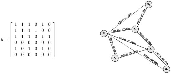 Then, considering a WSN composed of a set of nodes , being that every node has an associate positive weight value and a specific communication range, we construct an undirected and weighted graph in the following way. Each node corresponds to a vertex and two vertices and have an edge if is able to hear a message sent by with the value of RSSI ≥ dBm, as defined by Srinivasan and Levis [] as the minimum value for an adequate communication in WSNs.