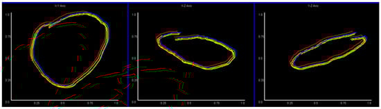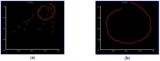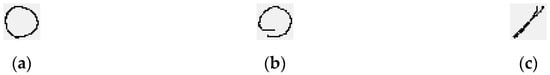 To illustrate the results of this process more intuitively, Figure 7 shows the example of a “circle” gesture in three different planes after processing (we generate images to observe the result, but it looks very small because the size is 28 × 28).