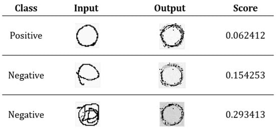 To achieve highly accurate classification for a single user, gesture authentication is regarded as a “one-class classification” (OCC) [] problem. Because of the particularity of the authentication, it is mostly conducted in a single-user scenario. Therefore, authentication can be considered as anomaly detection, and anomaly detection is an OCC problem. Unlike previous studies [,,,,] in gesture authentication, a system based on OCC could be more accurately called “authentication” because it can directly identify the user without the need to rely on other user groups. Gesture authentication is mostly multi-class classification in the previous studies, which means the system can only distinguish which user is the “authorized user,” but it cannot directly identify the user without other information. Also, the requirement of multi-class classification can be realized when multiple OCC systems are assembled together. An autoencoder is used as our OCC model, and this autoencoder is a five-layer neural network. It compresses the input data into a feature vector and then decompresses the feature vector into its original size. A mean squared error loss function will be used to evaluate the differences between input and output as a labeling process. Therefore, the autoencoder learns the positive gesture in the training stage; in the test stage, it will map the high-dimensional gesture data to a one-dimensional mean square error interval. For identifying true and false classes, we propose a boundary making strategy to judge if the test data is in a positive interval or a negative interval.