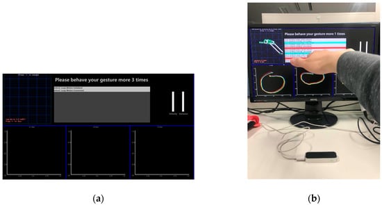 We have considered several input devices for gesture information collection, such as the devices used in previous research [,,,,]. There are two primary reasons for choosing this device. First, the depth camera is current, and has a promising future in many fields. Second, this device is suitable for tracking hand movement and includes significant performance optimization.