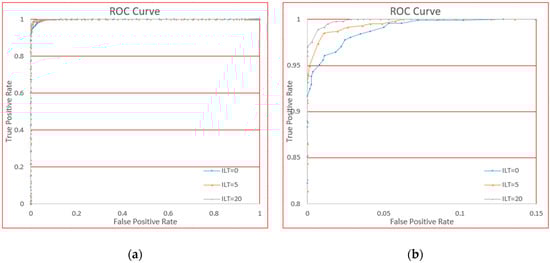 The ROC curve for different incremental learning times (ILT). (a) Is the global view and (b) is the local view for clarity.