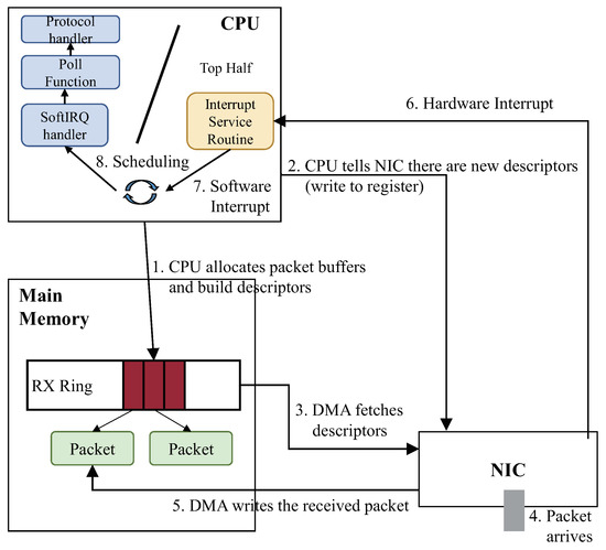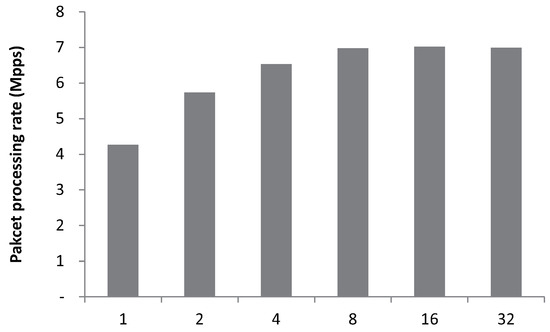 - Kim, J.; Jang, K.; Lee, K.; Ma, S.; Shim, J.; Moon, S. NBA (network balancing act): A high-performance packet processing framework for heterogeneous processors. In Proceedings of the Tenth European Conference on Computer Systems, Bordeaux, France, 21–24 April 2015; p. 22. [Google Scholar]