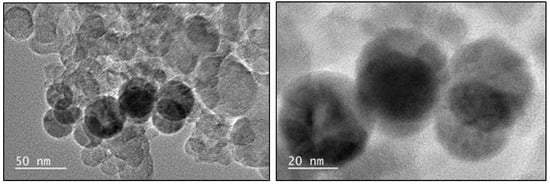 The size and crystallinity of the particles were determined using TEM. The analysis was conducted using a 200-KV JEOL 2100F (JEOL, Tokyo, Japan). For the InP/ZnS QDs, 5 µL of sample was pipetted onto carbon-coated 300-mesh copper grids. After 30 min of adsorption, the excess suspension was removed using filter paper, and the sample was left to dry completely overnight.