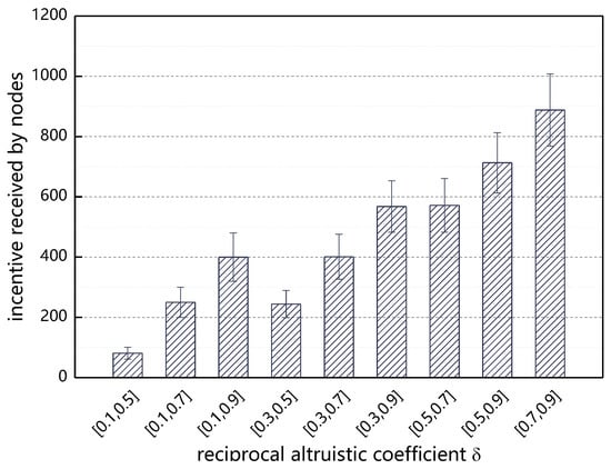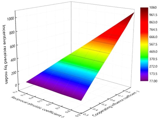 Cooperating influence coefficient is a coefficient that indicates the degree of influence of reciprocal cooperation among nodes on its . The larger the value, the greater the influence of the reciprocal cooperation behavior among nodes. This section also analyzes the reasonable values from the two aspects: incentive received by nodes and incentive received ratio.