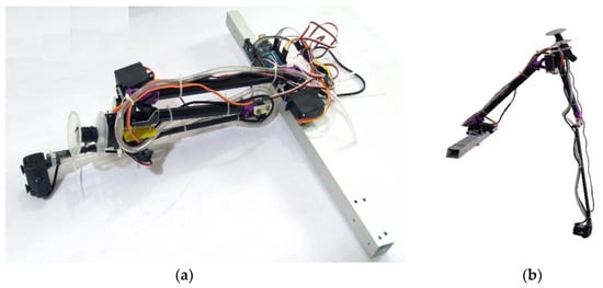 A two-degree-of-freedom (DOF) manipulator actuated using a servo motor was used to collect water samples as shown in Figure 12. An end-effector carried a water-sucking pump, which in turn connected through a hose. Drawn water was collected in the respective storage tank with a 1 L capacity. The depth of water collection was controlled using a rope driven by a stepper motor. Encoder feedback was sent to an Arduino based controller (Arduino Srl, Strambino, Italy) to monitor the depth of the collection of water. The arm of robot manipulator was made up of carbon fiber and a waterproof servo motor was attached at each link of the robotic arm. During the water sample collection, stability of the vehicle was assured through distributing water using a two-way control value. A water level sensor was used to measure the quantity of water, and corresponding feedback was sent to control the pump and retraction of the robotic arm. Buffer plates were placed in the water storage tank to dampen the vibration caused due to turbulence of water in the storage tank.
