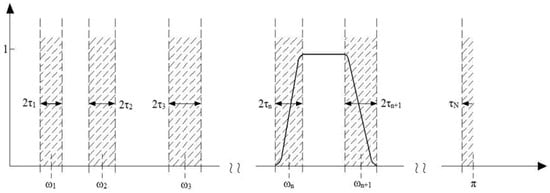 Supposing that a signal consists of N components, and these components can be well separated in the Fourier spectrum. The Fourier spectrum can be divided into N segments, and each segment corresponds to one mode. The boundary limits between each segment is , = 0 and = . The interval division of the Fourier axis is shown in Figure 1. Each segment is indicated , then it is easy to see that . Centered around each , it defines the transition phase (the gray hatched areas on Figure 1) of width . is set as () to simplify the equation.