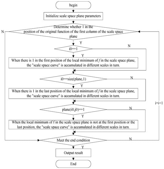 Step 4. When the last position in the scale space plane exists the local minimum value of the original function, the scale space curves are sequentially accumulated under different scales in order to obtain the minimum length curves . Otherwise execute Step 5.