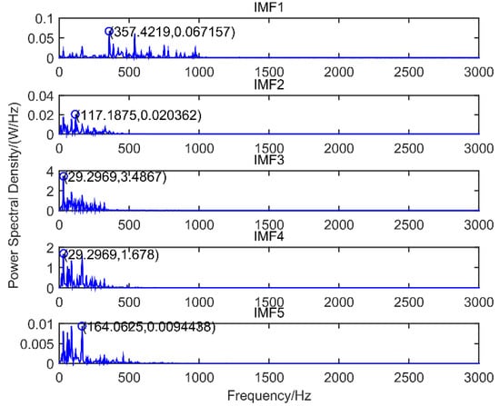 Step 8. The power spectrum analysis is performed on the IMFs component in order to extract the fault feature frequency.