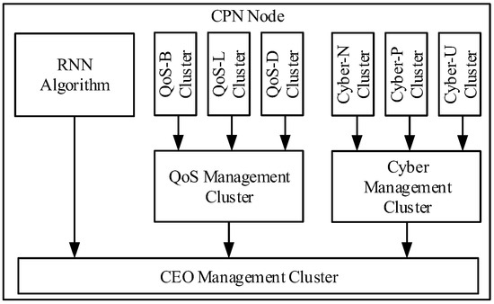 The DL Cluster Structure emulates the way the brain learns and makes choices by combing different learning algorithms. The proposed model is based on the RNN Reinforcement Learning for fast local decisions and DL for long-term memory to remember network identity: QoS metrics (Delay, Loss and Bandwidth) and Cyber keys (User, Packet and Node). The addition of a layer of DL Management Clusters (QoS, Cyber and CEO) takes the final routing decision based on the inputs from the DL QoS clusters and RNN Reinforcement Learning algorithm (Figure 6). The Deep Learning Cluster Structures has been applied in the CPN for Quality of Service metrics and Cyber Security keys in Management Decisions based on packet routing and flow control.