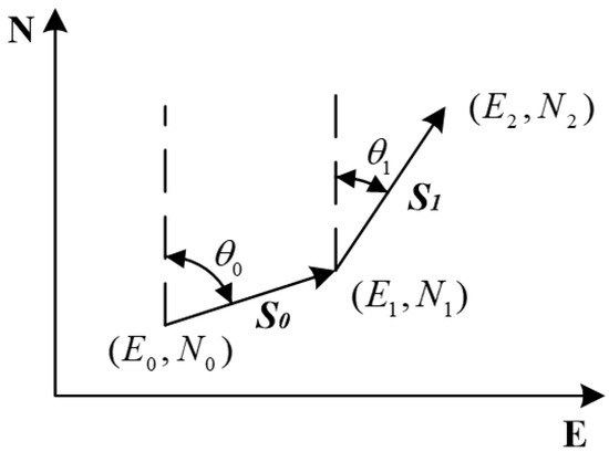 In this Figure, N and E represent the North and East directions respectively. () is the pedestrian positioning coordinate. represents the angle between pedestrian forward direction and North direction.