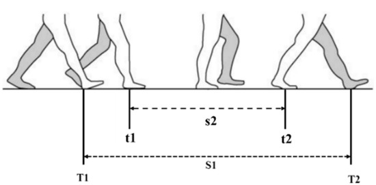 Since there is no traditional zero-velocity status for handheld smartphone navigation, choosing a right method for KF is very important. A typical step cycle is shown in Figure 3. S1 between the right foot heel landing at T1 and the left foot heel landing at T2 is a complete step cycle. T1 and T2 are defined as step time. The process s2 between t1 and t2 represents the period when pedestrian lifts one foot in the air. In the study of pedestrian’s walking status, we found that the turning and heading changes of the pedestrian happen in s2 part. According to Newtonian Mechanics, another force is required to change the motion of an object while moving. In s2 process, the right foot supports the human body to change his heading. During this time, the heading change of smartphone is consistent with that of the human body. At same time, a Simulated-Zero Velocity Update (S-ZUPT) status, similar as the traditional ZUPT status, was found within s2.
