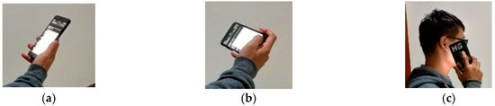 Three Using-modes of Smartphone. (a) Normal mode as Mode 1; (b) Landscape mode as Mode 2; (c) Call mode as Mode 3.