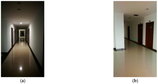 The Environment of Walking Experiments. (a) One of the corridors of experiment area; (b) one of the corners of the Experiment area.