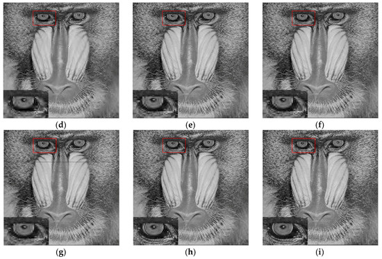 For the Mandrill image with a size of (n = ), we reconstruct the image by m times sampling of the image, m = 28900 (), and the sampling rate is about m/n = 1/9. The results of the experiment are shown in Figure 5.