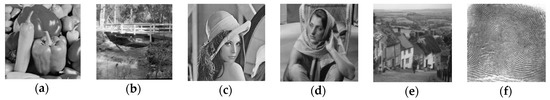 Different representative images of (a) Peppers, (b) Bridge, (c) Lena, (d) Barbara, (e) Goldhill, (f) Fingerprint.