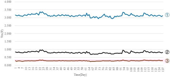 As shown in Figure 5, in order to find the appropriate resistance value of the load resistor in experiment, we perform an experiment with the purpose of supervising the zero value of sensors which continued for 127 days. By experiment, when Rl is about one-fifteenth of the value of Rp, the output response of sensors is obvious.